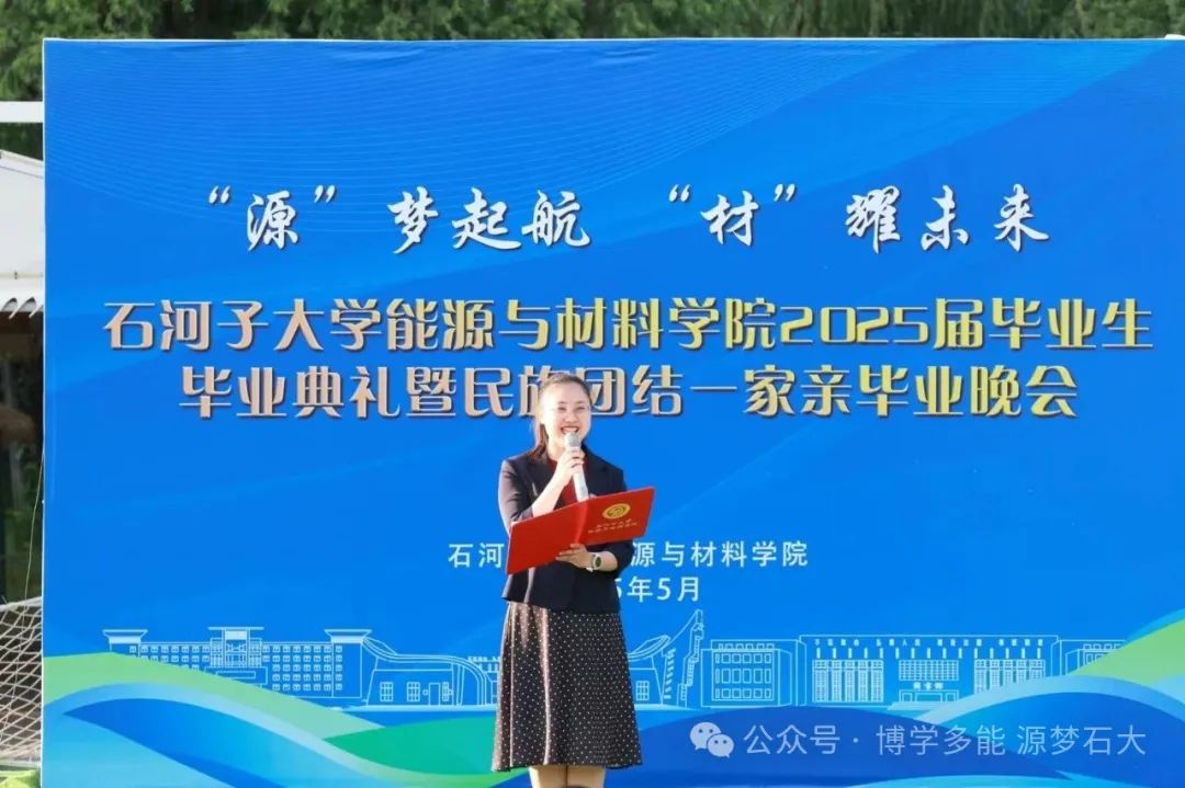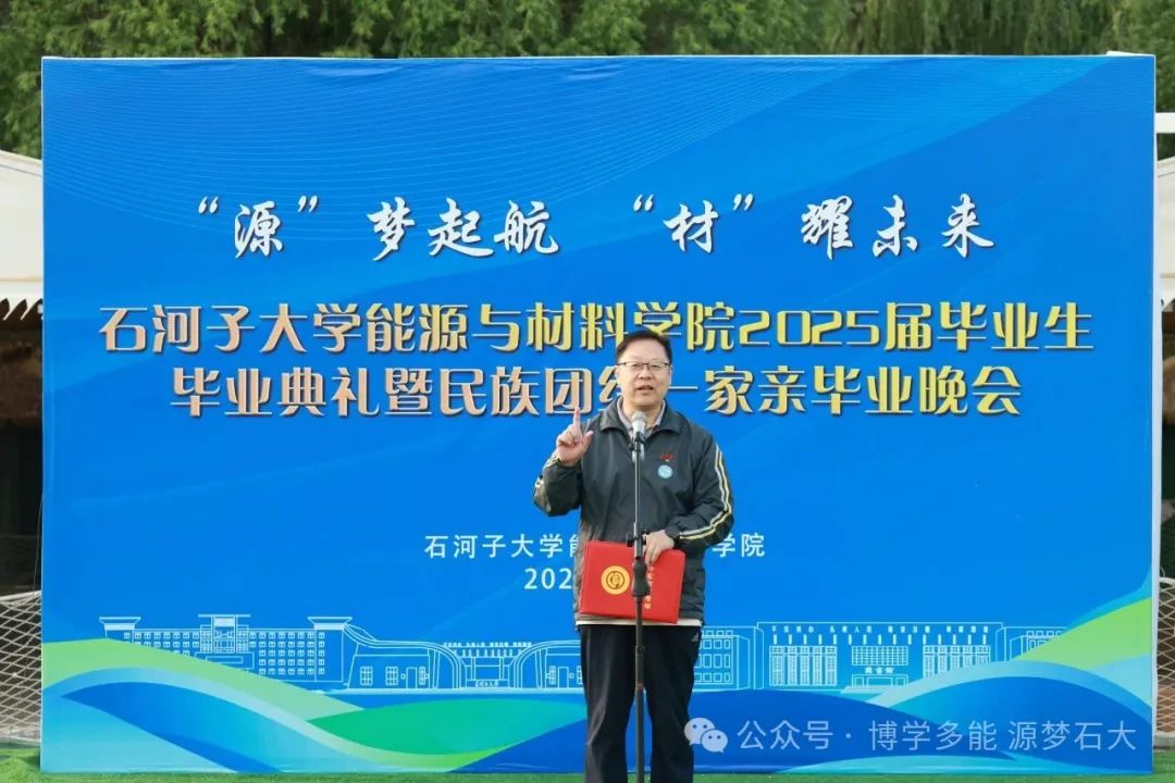 5月28日晚20:30,“源”梦起航,“材”耀未来——石河子大学能源与材料学院2025届毕业生毕业典礼暨民族团结一家亲毕业晚会在西公园鱼米水乡温情启幕。学院党委副书记滕婉蓉主持,学院领导、学院全体教师、毕业班辅导员、班主任及2025届电气工程及其自动化专业毕业生与在校学生代表150余人齐聚一堂,共襄盛会。