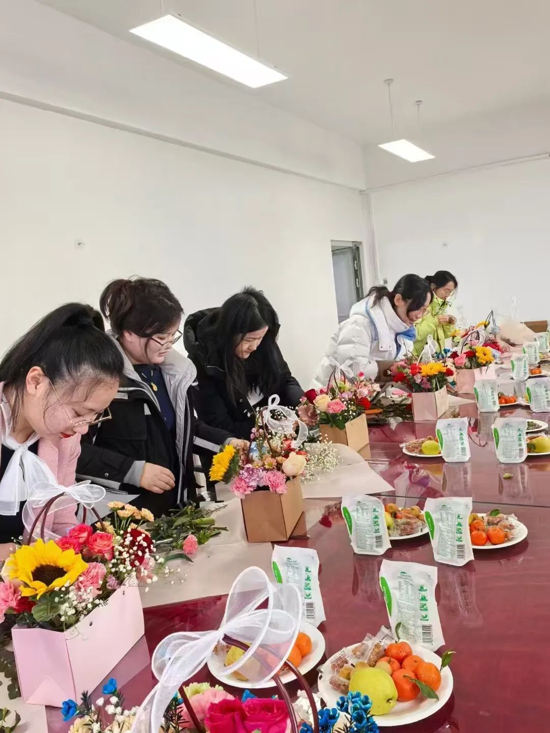 活动中,专业花艺师受邀现场教学,耐心细致地讲解了花材的养护和识别,插花的技巧和要点,鲜花插放知识等。女教职工们兴致勃勃地跟随花艺师的步伐,动手创作属于自己的花篮,制作出了一件件春意盎然、清雅别致的插花作品,现场气氛温馨而欢乐。