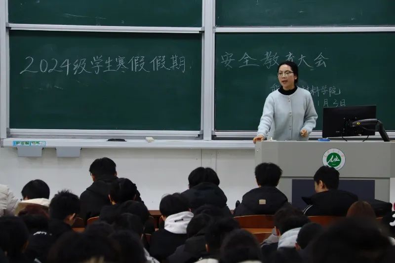 为提高大一新生安全素养,增强安全意识,1月3日16:30,我院在会3-102开展了寒假假期安全教育大会。大会由辅导员陈世刚和24级各班班主任老师主讲,2024级全体学生参与了此次安全教育大会,院党委副书记滕婉蓉出席。