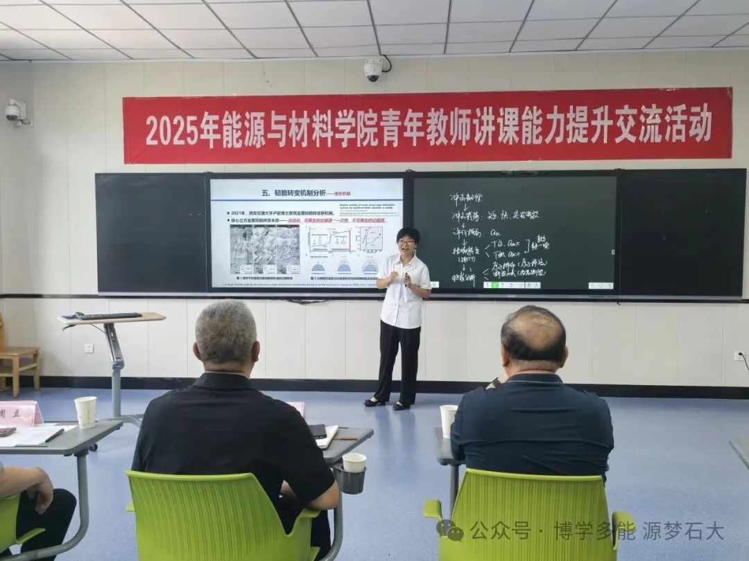 为加强青年教师队伍建设,系统提升青年教师教学设计、课堂呈现与课程思政能力,2025年7月2日—3日在博学楼A206教室,能源与材料学院举办了青年教师讲课能力提升交流活动,通过示范教学、教学展示与专家点评相结合的形式,为青年教师搭建教学能力提升平台。校长李兆敏参加此次活动。