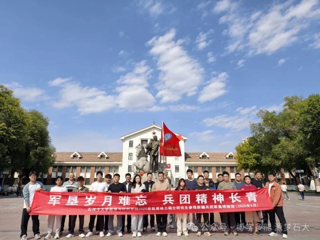 为深化爱国主义教育,加强新生思想引领,激励青年学子弘扬兵团精神,厚植家国情怀。2025年9月13日,能源与材料学院2025级研究生在辅导员陈世刚老师和班主任田晓东老师的带领下集体前往新疆兵团军垦博物馆进行参观学习,在历史积淀与现实求索的交融中,汲取砥砺奋进的磅礴力量。