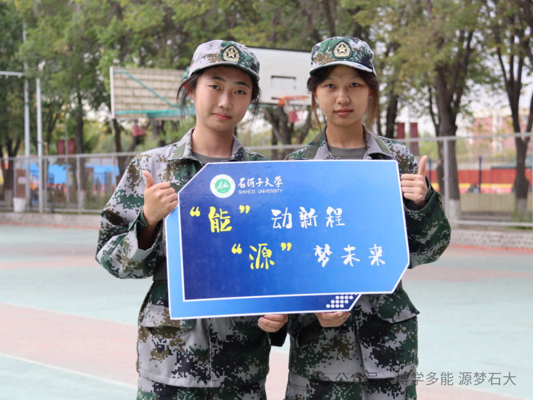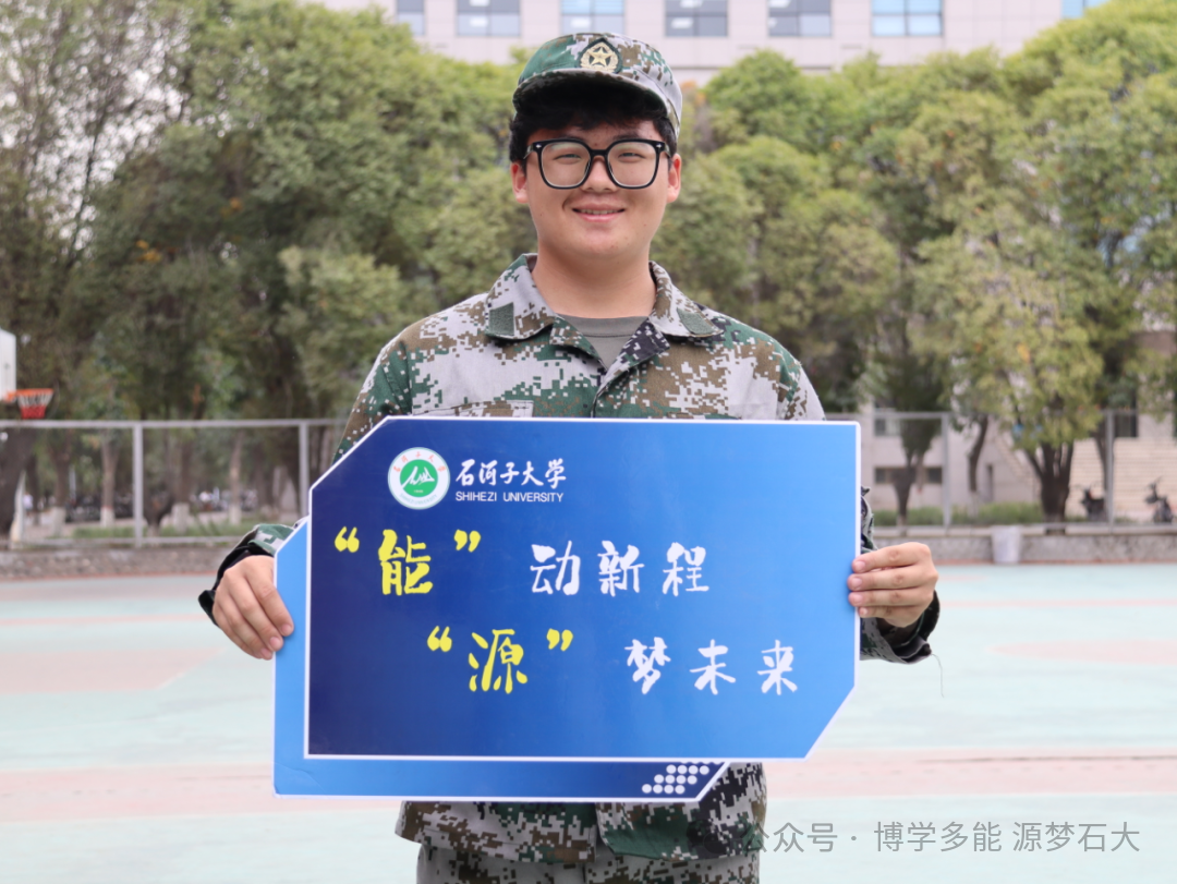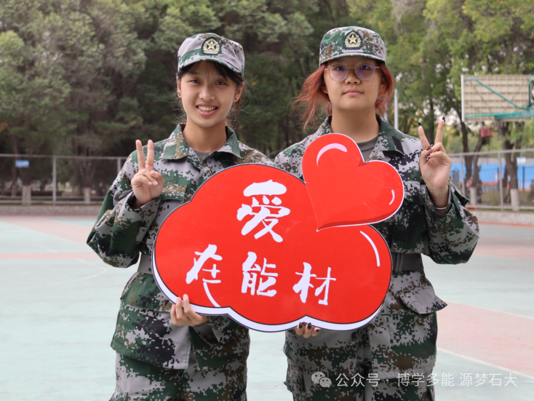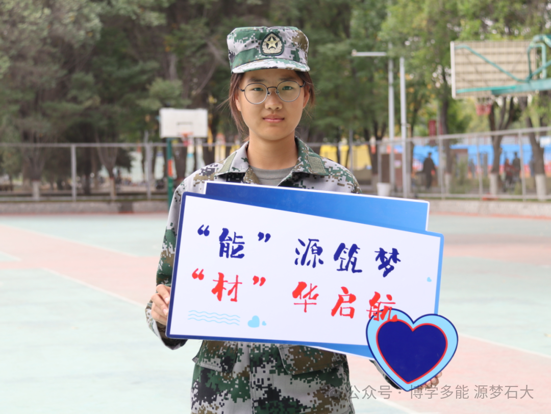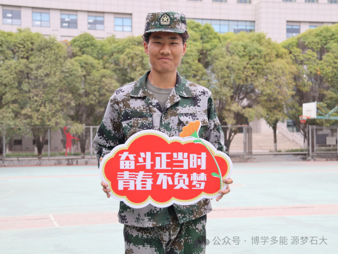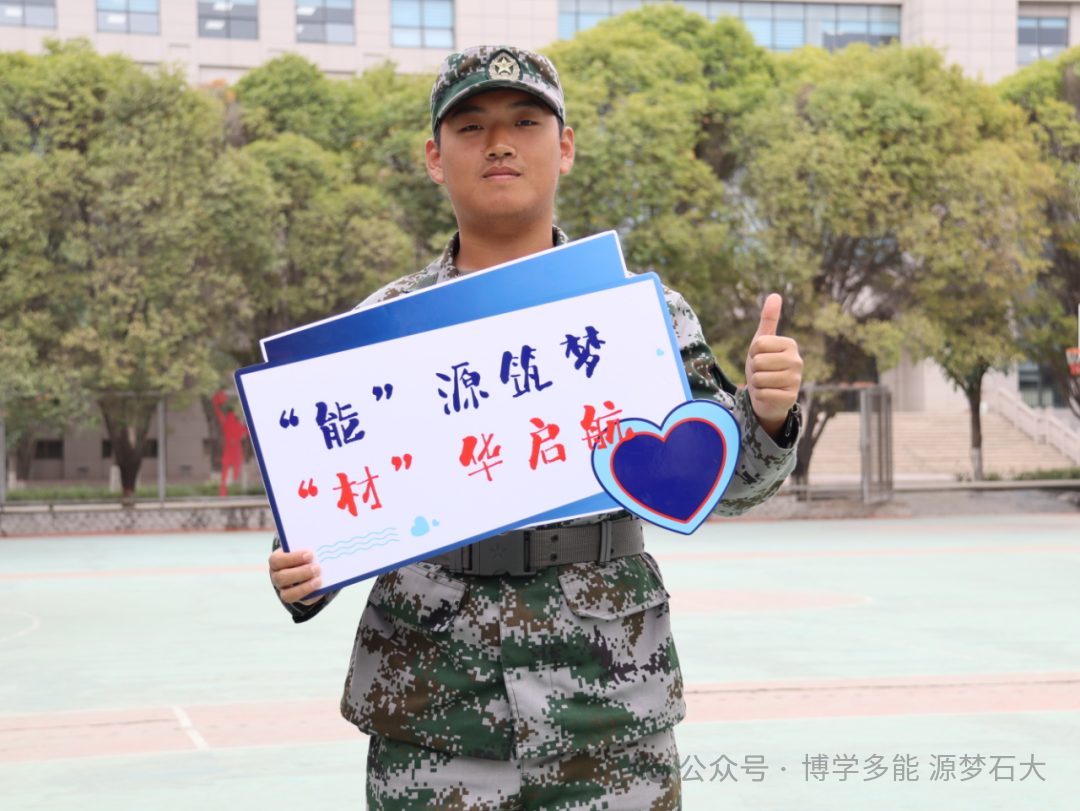 迷彩戎装展朝气,手举牌上的宣言,是军训里青春与担当的鲜活印记。