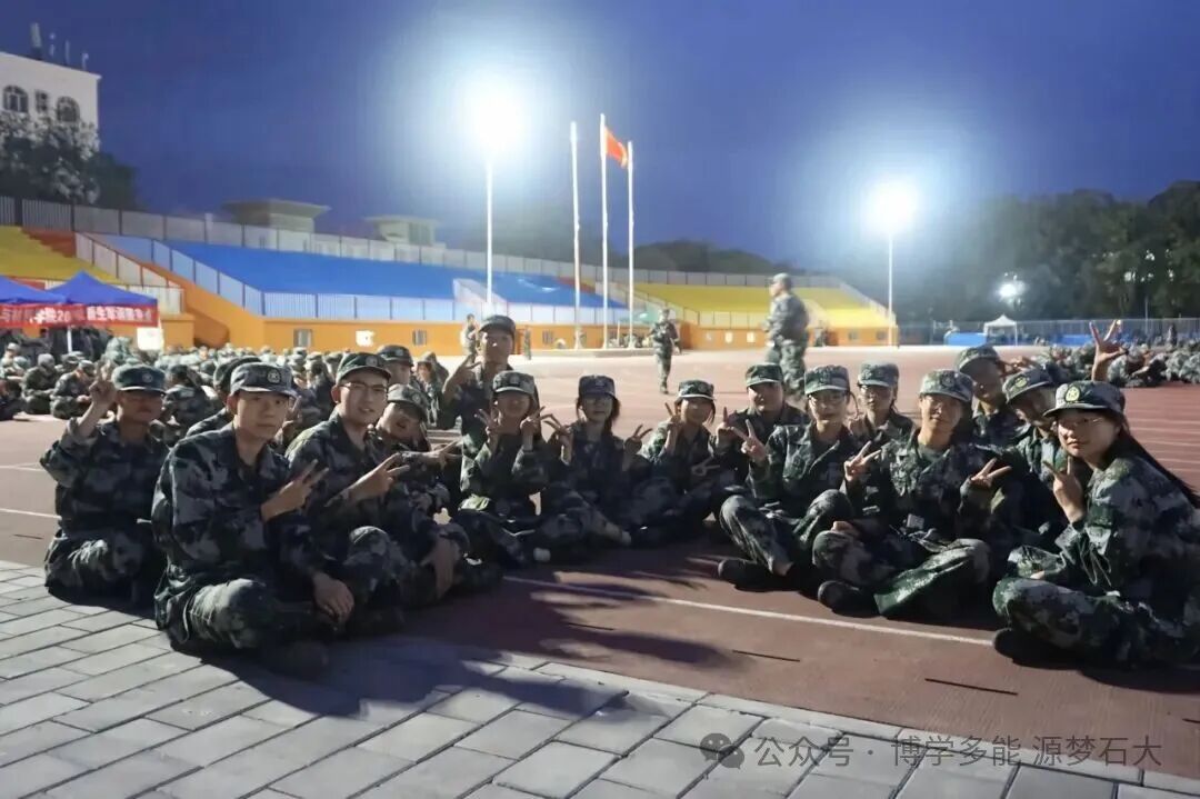 迷彩服的绿意里藏着朝气,青春的笑靥映着星光。夜晚的合影、闪烁的手电阵,每一幕都是军训里难忘的热血与温情。