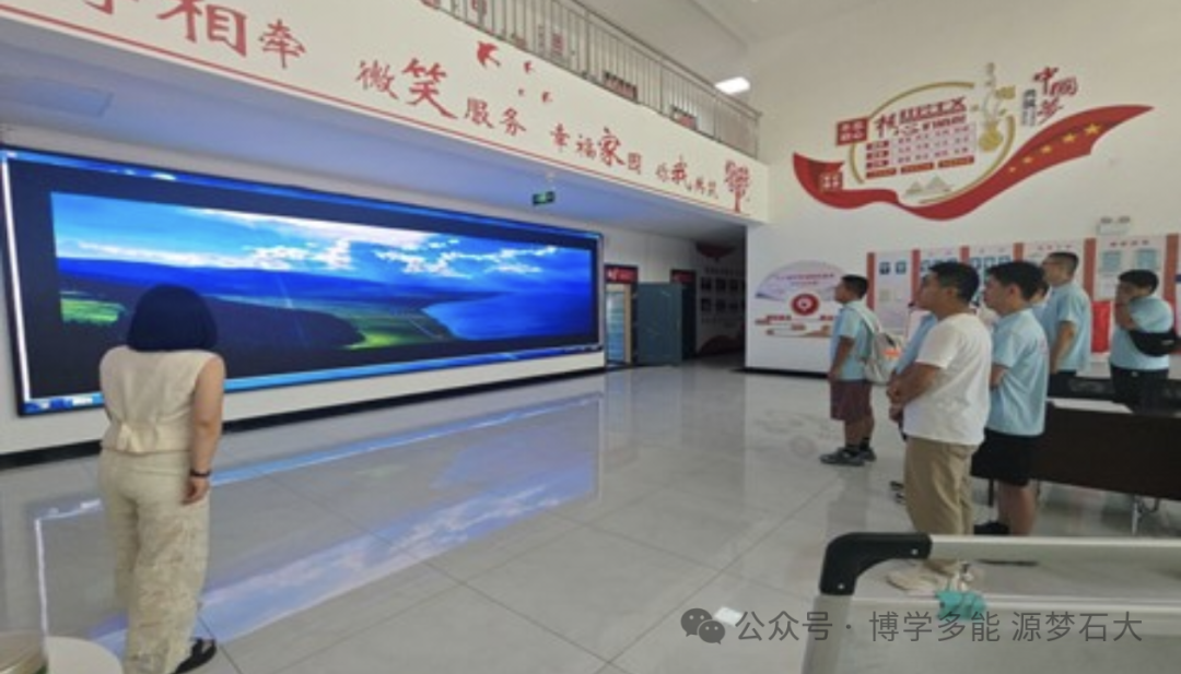 7月10日,石河子大学能源与材料学院赴第五师双河市九〇团寻访兵团故事实践团实践团在抵达艾比湖社区服务中心后,首先在一楼大厅观看了关于九〇团及艾比湖社区的宣传短片。短片系统地呈现了九〇团的地理风貌、发展历程以及艾比湖社区的建设成果,让成员们对这片土地有了更直观、详细的认知。