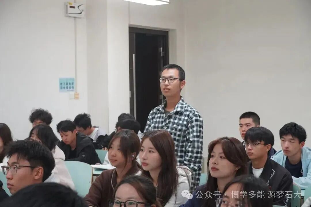 现场互动环节气氛热烈,同学们围绕“兵团精神与青年担当”展开深入讨论,纷纷表示深受触动、倍感振奋。25级新能源1班薛鳌同学说:“雄关漫道真如铁,而今迈步从头越。作为新能源专业的学子,我们要发扬开拓进取的兵团精神,为‘双碳’助力,让青春发光。”