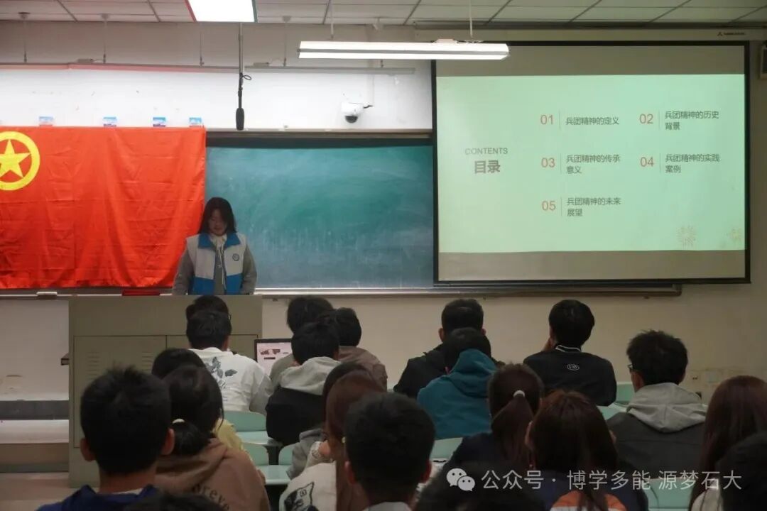 此次主题宣讲会不仅让同学们对兵团精神的历史脉络与现实意义有了更深刻的理解,更点燃了青年学子的奋斗热情与使命担当。未来,新能源2023级团支部将持续创新主题教育形式,通过红色研学、实践调研等多样化活动,推动兵团精神融入日常、浸润人心,引导青年学子在新时代新征程中勇挑重担、砥砺前行,让兵团精神在青春接力中薪火相传、熠熠生辉。