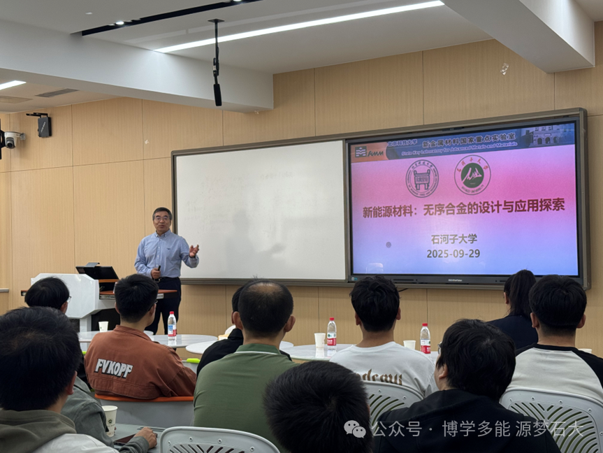 9月29日,石河子大学能源与材料学院(兵团能源发展研究院)开展2025年“能源大讲堂”学术讲坛系列活动(六)。北京科技大学教授、博士生导师、新金属材料全国重点实验室副主任王辉受邀作专题报告。