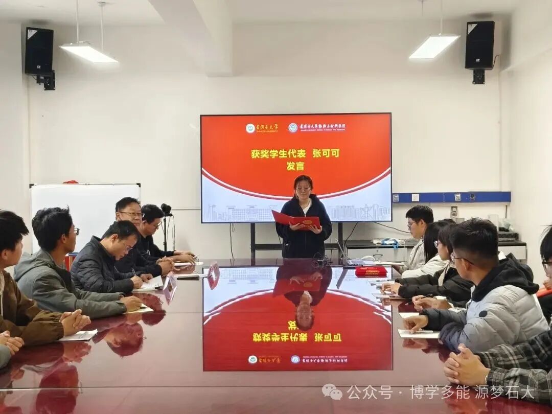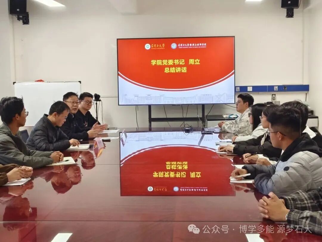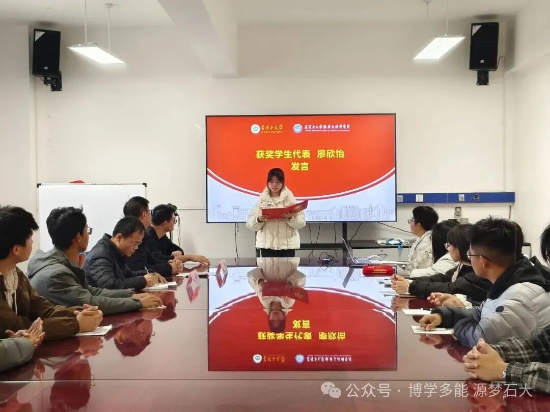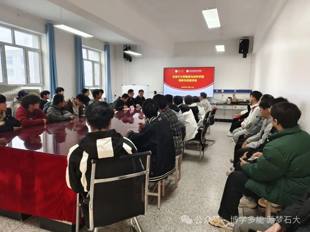 2025年10月17日下午,石河子大学能源与材料学院在学院四楼400会议室召开表彰先进座谈会,聚焦张可可、廖欣怡两位同学的见义勇为事迹,弘扬正能量,激励全院师生传承优良品德。学院党委书记周立、新能源科学与工程系党支部书记李仁杰与辅导员陈世刚及大概40名学生代表参加。