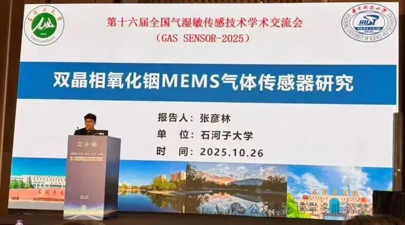 石河子大学能源与材料学院青年教师张彦林受邀参会,并在“半导体传感器芯片与MEMS集成”专题分会场作题为《双晶相氧化铟MEMS气体传感器研究》的学术报告。报告中,张彦林老师围绕能源领域对气体监测的高精度、微型化、低功耗需求,系统阐述了双晶相氧化铟材料的制备工艺优化、MEMS传感器的微型化设计思路,以及该传感器在能源生产、储能系统、能源环保等场景的应用潜力,解决了传统传感器在能源复杂工况下“体积大、稳定性差、适用场景有限”的痛点。