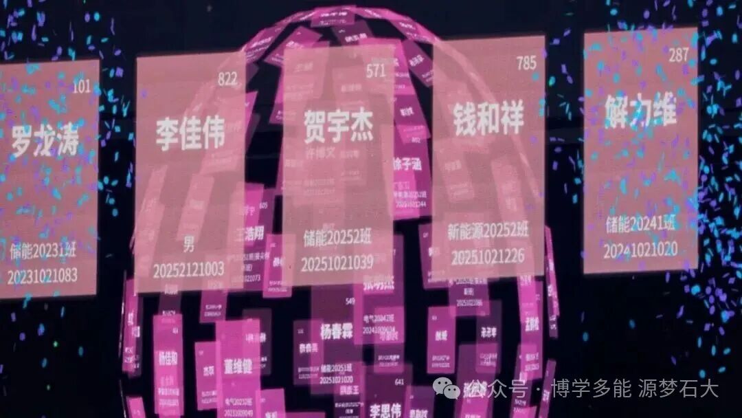 灯光骤暗,幸运号码在大屏上飞速滚动!主持人话音未落,“能材锦鲤”随机诞生,被抽到名字的学生瞬间起身,眼中满是惊喜与雀跃。欢呼声、掌声交织着此起彼伏的喝彩,丰厚礼品与灿烂笑容一同定格。
