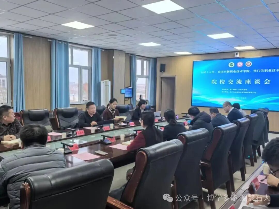 为深入贯彻落实兵团关于能源转型与产业升级的决策部署,推动校地企协同创新与人才培养体系深度融合,1月5日,石河子大学能源与材料学院(兵团能源发展研究院)院长张立新率调研组赴第二师铁门关市,围绕能源化工领域的技术需求、校企合作与人才培养开展专题调研。调研组与二师科技局、兵团兴新职业技术学院、铁门关职业技术学院参会代表进行座谈交流,共商合作新路径,共绘发展新蓝图。