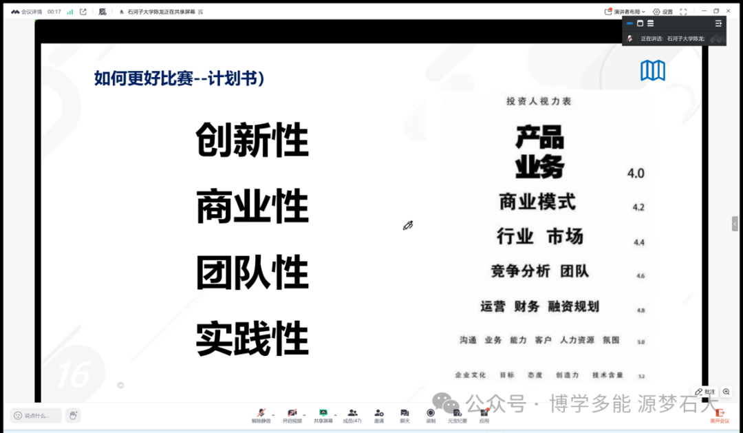 随着备赛进入关键的项目打磨期,3月11日晚8:30,学院积极对接校外优质资源,组织开展线上专题培训,为参赛团队的项目打磨与竞赛筹备提供专业指导与有力支持。