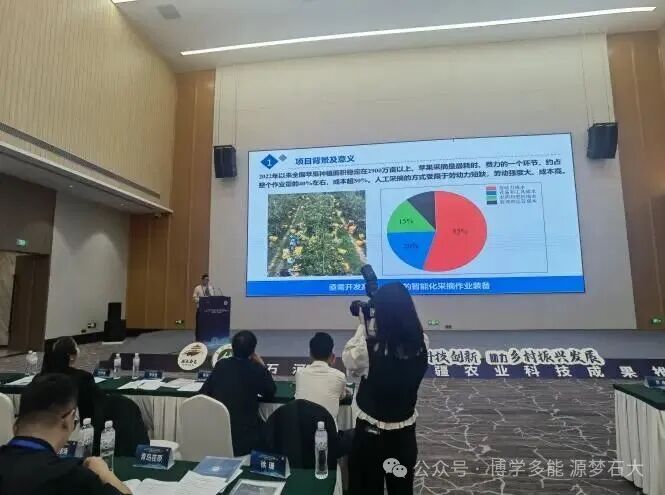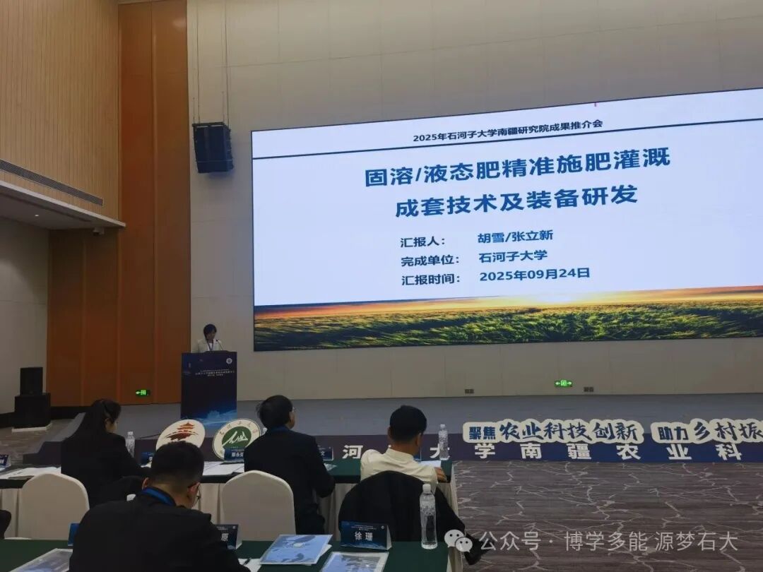 随后,12位专家学者依次开展石河子大学前沿农业科技成果推介。其中,张立新院长、胡雪老师作“固溶/液态肥精准施肥灌溉成套技术及装备研发”成果推介,张肖阳老师聚焦“苹果采收装备科技成果”进行推介。推介成果涵盖智慧农业、资源高效利用、绿色能源等多个方向,充分展现出石河子大学在服务南疆农业现代化方面的雄厚科研实力。
